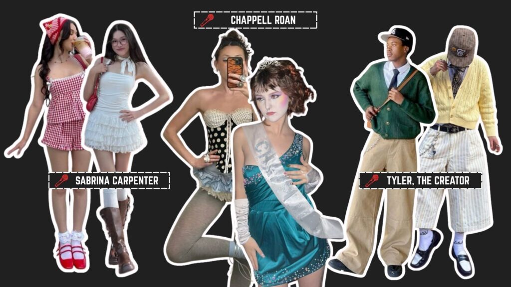 Muito além de “look de festival”, o que vemos hoje são referências diretas dos próprios artistas que estão no line-up. E nesse ano, três nomes puxam tendências bem diferentes entre si: Sabrina Carpenter, Chappell Roan e Tyler, The Creator.